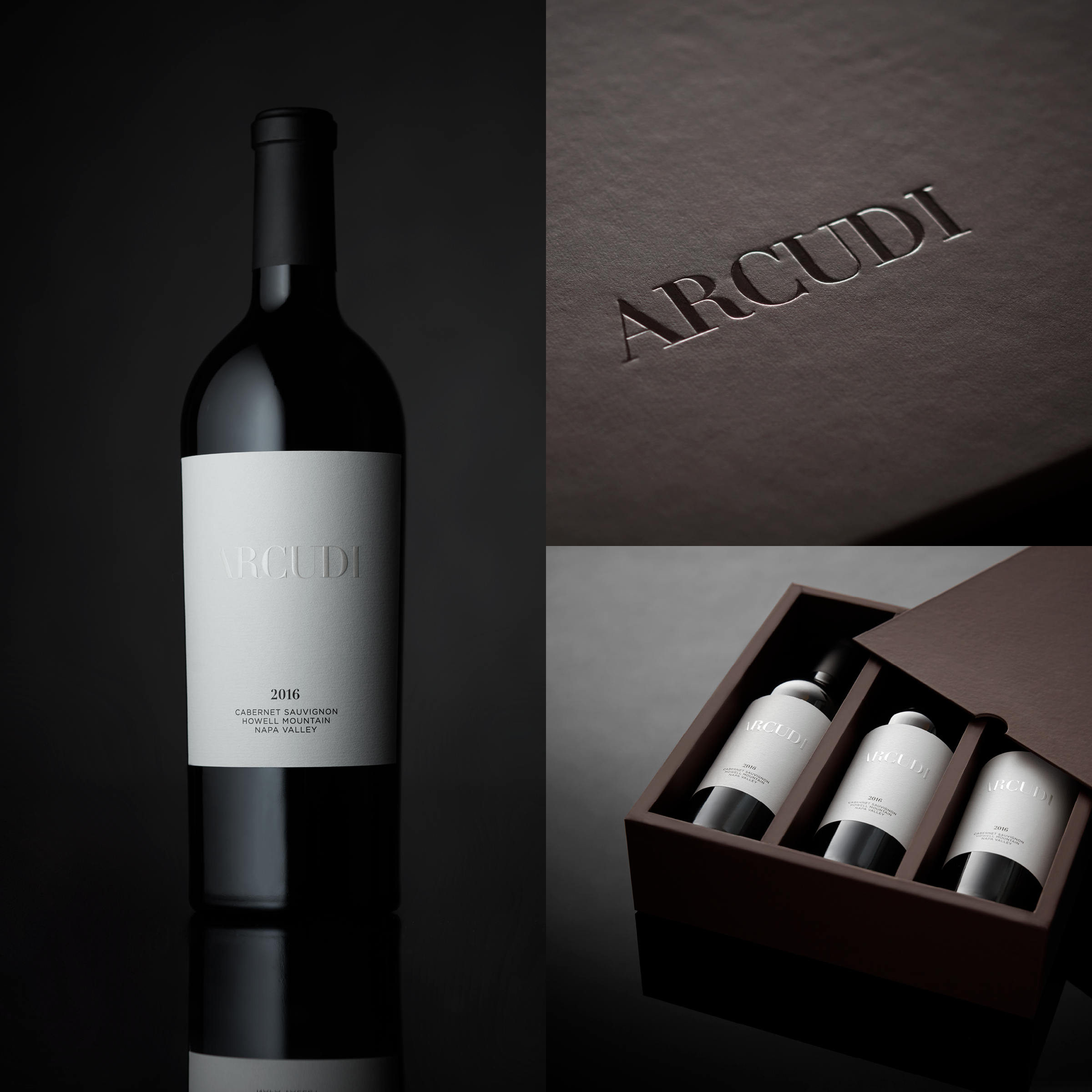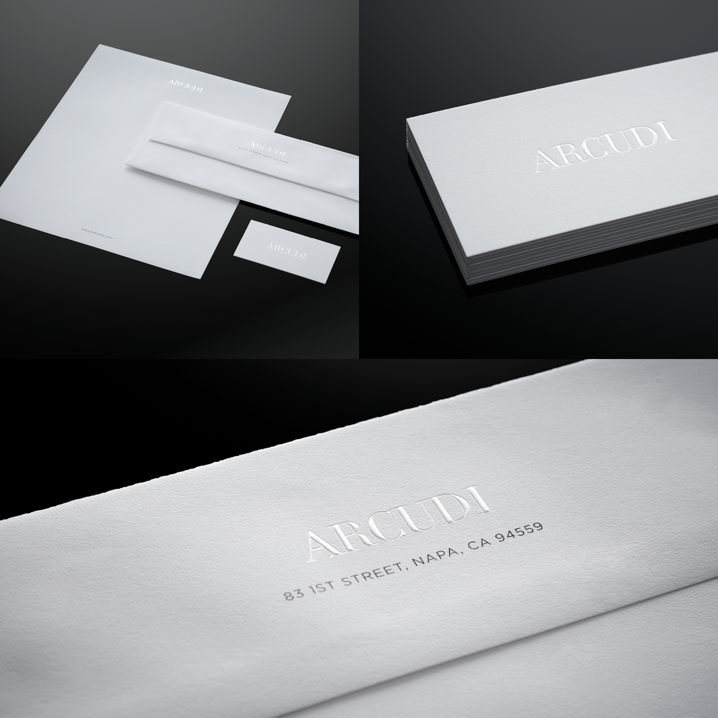 Stationery and packaging included blind-embossed bottle labels, business cards and a custom shipping box.