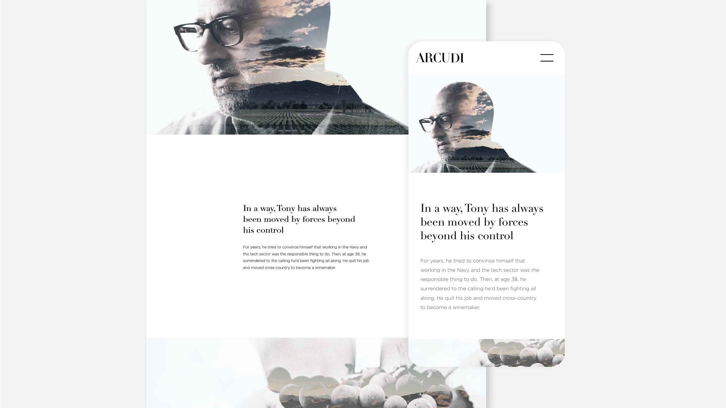 Arcudi a brand that infuses humanity into an exclusive single-vintage wine. You don’t sell $150 bottles of exclusive single-vintage wine by “targeting consumers.” You need to find the soul. The humanity. First, of the man who makes it—the man who is literally the brand. Then, finding a way to offer that humanity through every aspect of branding, messaging, and e-commerce.